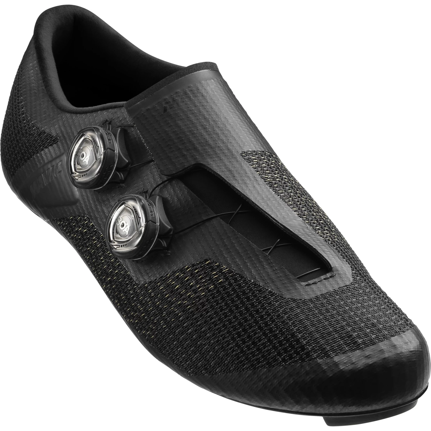 From towering alpine peaks to punishing pavé. Endless climbs, all-out attacks, the sprint to the finish when it’s all on the line. Mavic built the next-generation Cosmic Ultimate to excel in every aspect of road racing. This is high-performance, pro-level footwear with no limitations and zero compromise. To meet the demands of top WorldTour pro racers, Mavic targeted three key performance factors for the Cosmic Ultimate: maximum power transfer, foot support, and adjustability. Test riders told us that many shoes excel in one or two of those areas, but they wanted one shoe that does it all. Mavic started with their cutting-edge Matryx material, a patented technology in the upper that features a Kevlar woven polyamide. This lightweight foot-mapping material offers supreme foot stability and support with minimal lateral movement. Combined with a stiff full carbon outsole and a low 6.5mm stack height, the result is an efficient pedal stroke that transfers every ounce of your energy with zero wasted watts. The Matryx upper has an overlap construction with a 3D tongue design, producing a close, comfortable fit for all foot shapes and sizes. And two BOA® Fit System IP1 dials provide two-way micro adjustment for a precision fit that keeps your feet comfortable on the longest, toughest rides. A low-profile collar around the ankle offers maximum range of motion, and the integrated heel cup with pre-shaped foam keeps the back of your foot firmly in place. Inspired by the hardmen of road cycling, the Cosmic Ultimate is a true all-rounder. It will help get you through your longest, hardest training days, and give you a winning edge when you need it most.