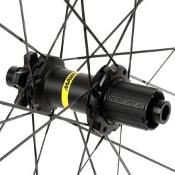 Extensive field testing with pro athletes determined that a 25mm inner width was ideal for a quick and precise ride quality on fast racetracks. The wider rim optimized tire grip and add confidence and control on rugged singletracks. The rim is laced with 24 crossed straight-pull spokes for maximum power transfer and enhanced vertical compliance. The Infinity hub design optimizes the lateral stiffness and the spoke lacing maximizes power transfer.